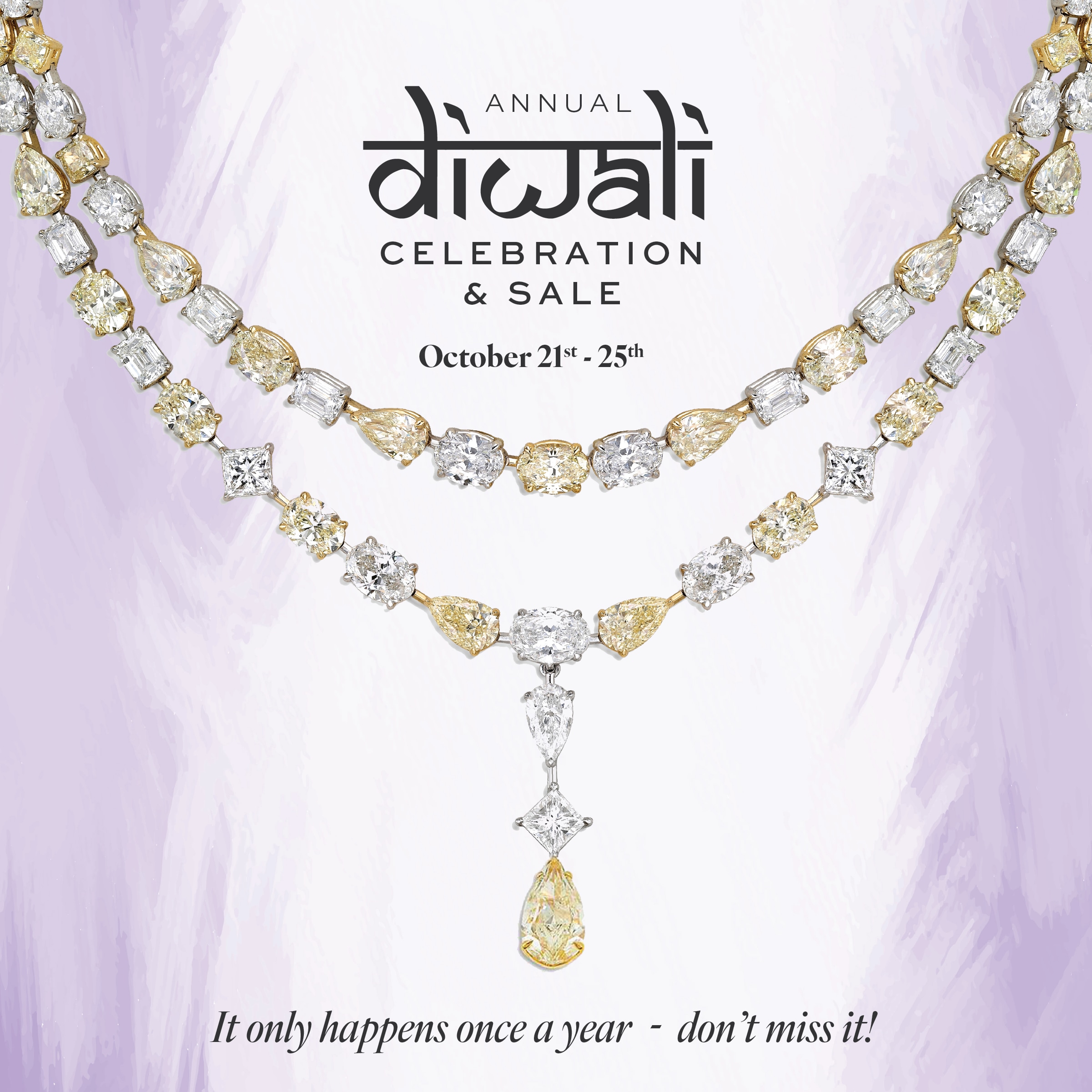 Diwali Celebration & SALE only happens once a year and it kicks off on Tuesday, October 21st! Our showroom will be filled with many gorgeous NEW statement pieces, one-of-a-kind necklaces, bracelets, and earrings and lots of sparkling diamonds and gems. Come see us Tuesday- Saturday! October 21st - 25th 10am - 6pm (extended hours) Delicious Indian snacks, drinks, & entertainment will be offered all day.